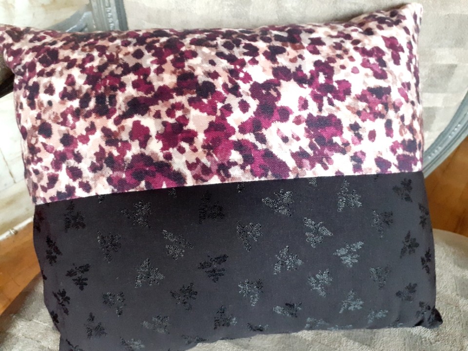 Tissu coton satiné violet foncé avec motif fleurs ton sur ton Lelièvre.
