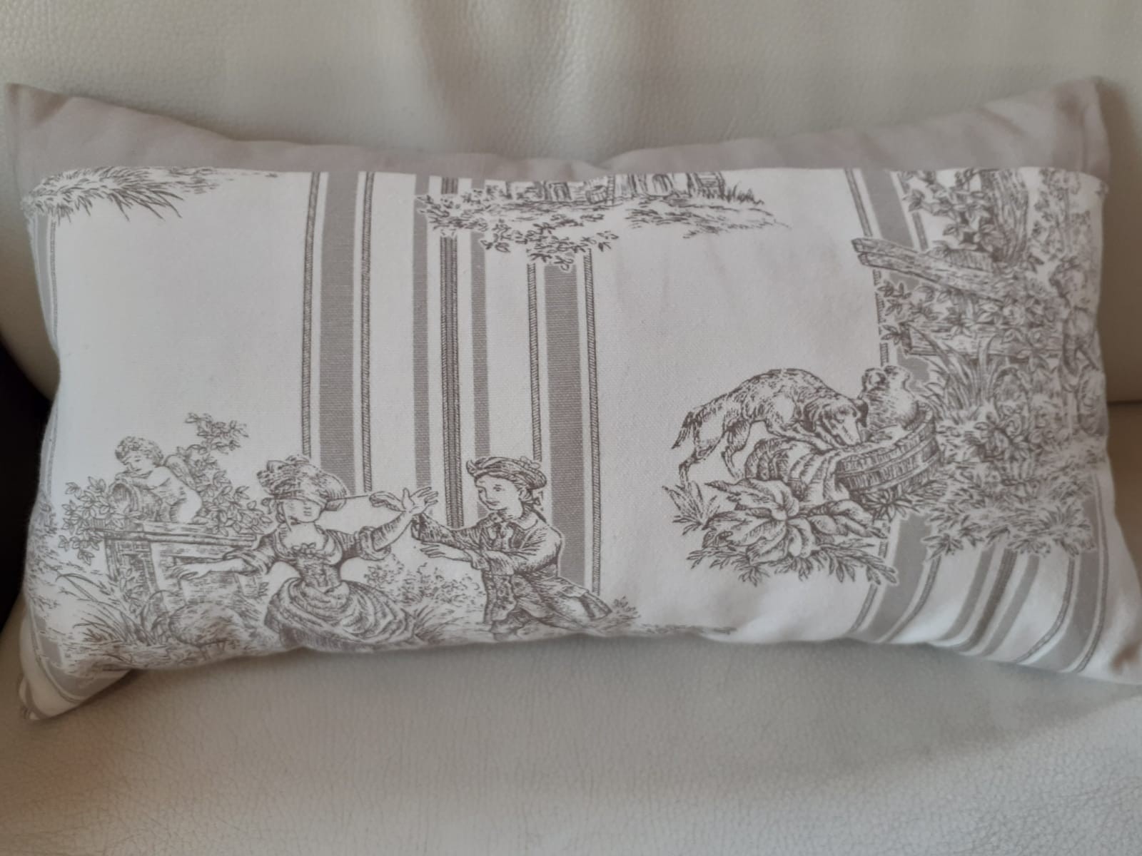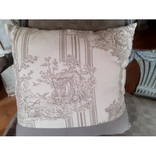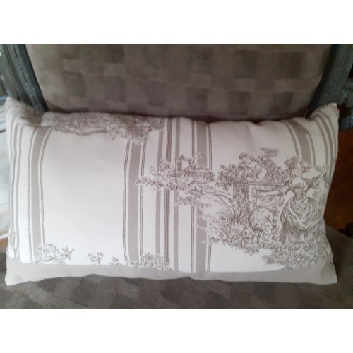 Tissu Toile de Jouy coton Inès de la Fressange. Motif gris taupe "scène champêtre".