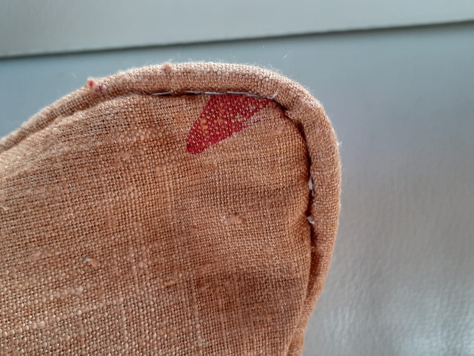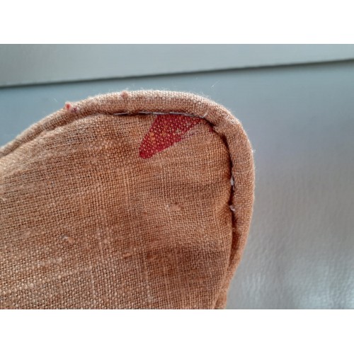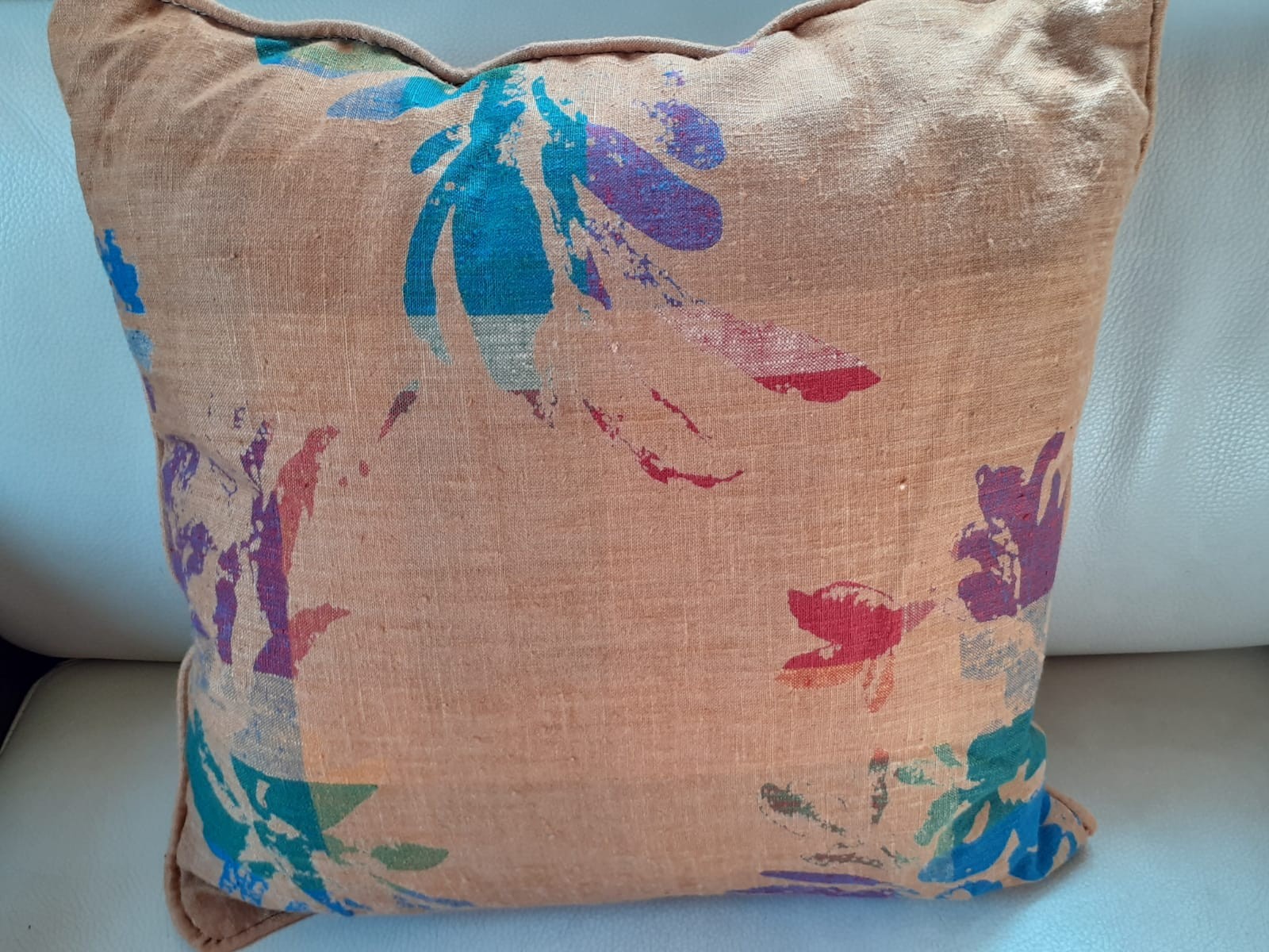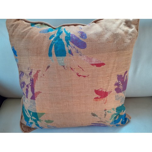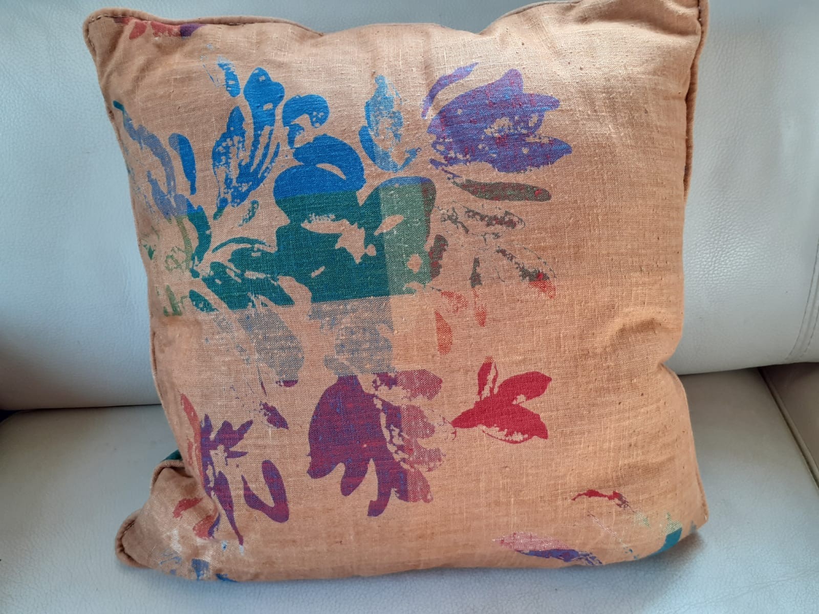 Tissu fond couleur sable avec impressions multicolores 100 % lin Lelièvre.