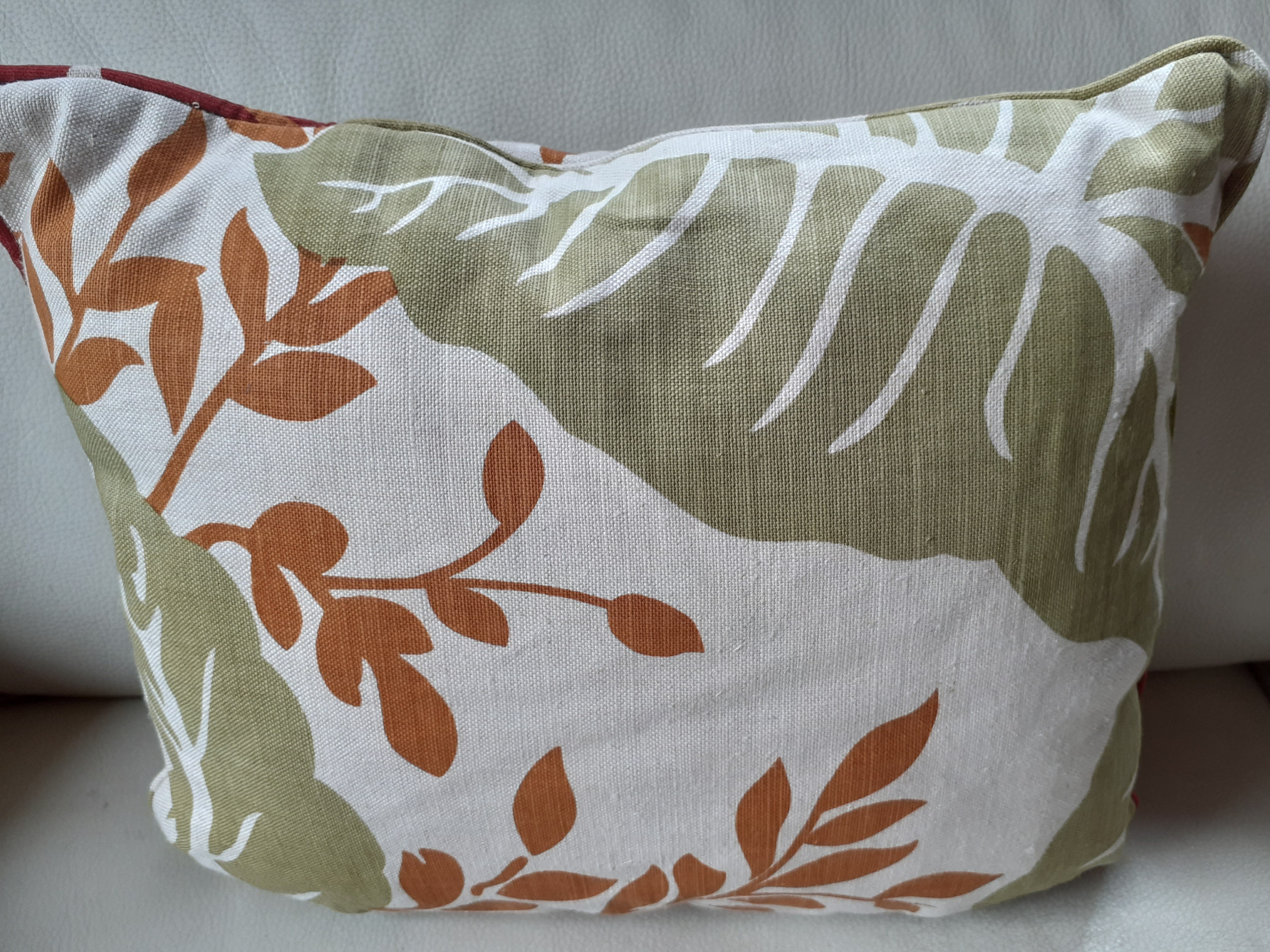 Impression feuille botanique écru, vert, ocre.