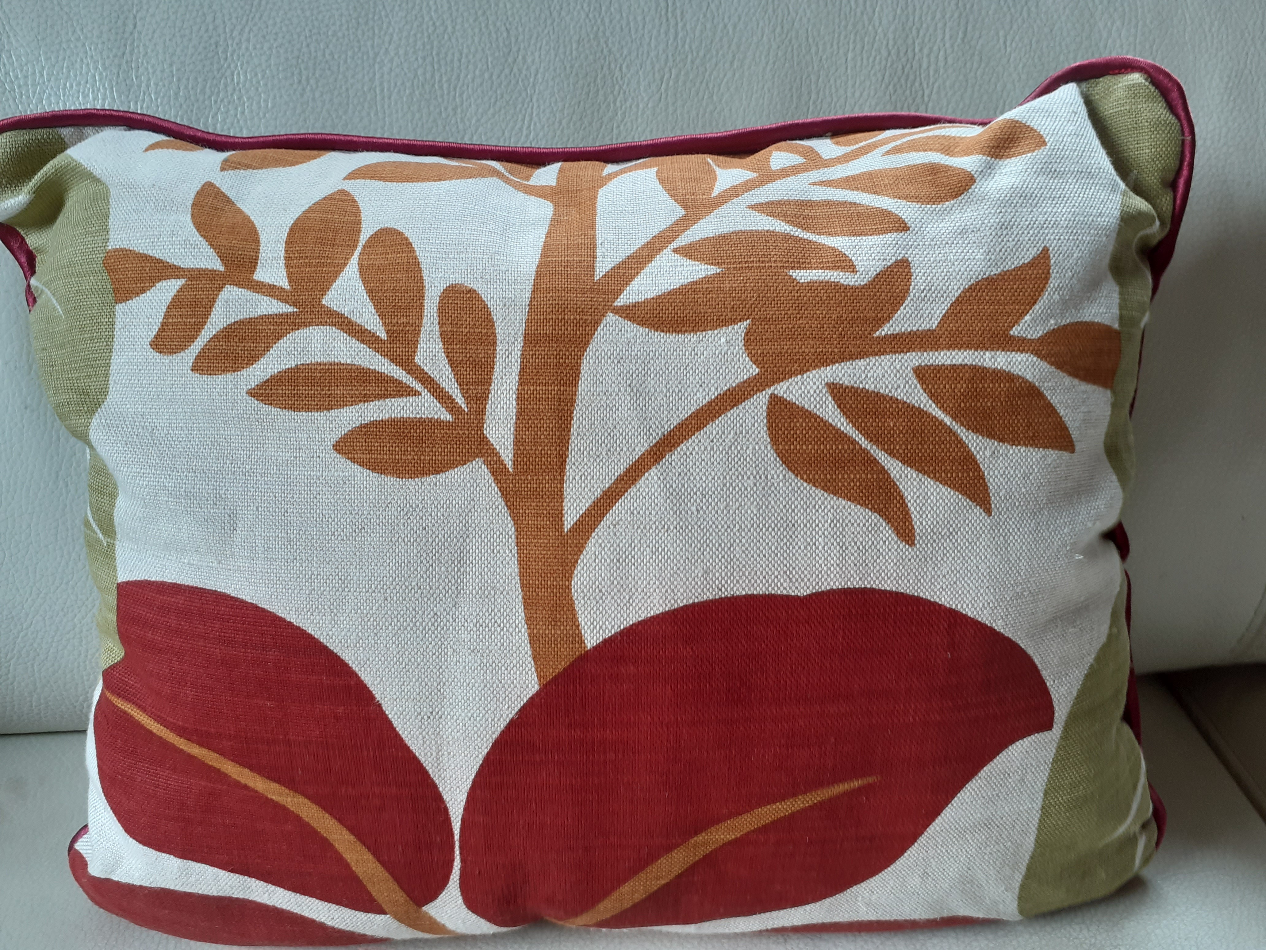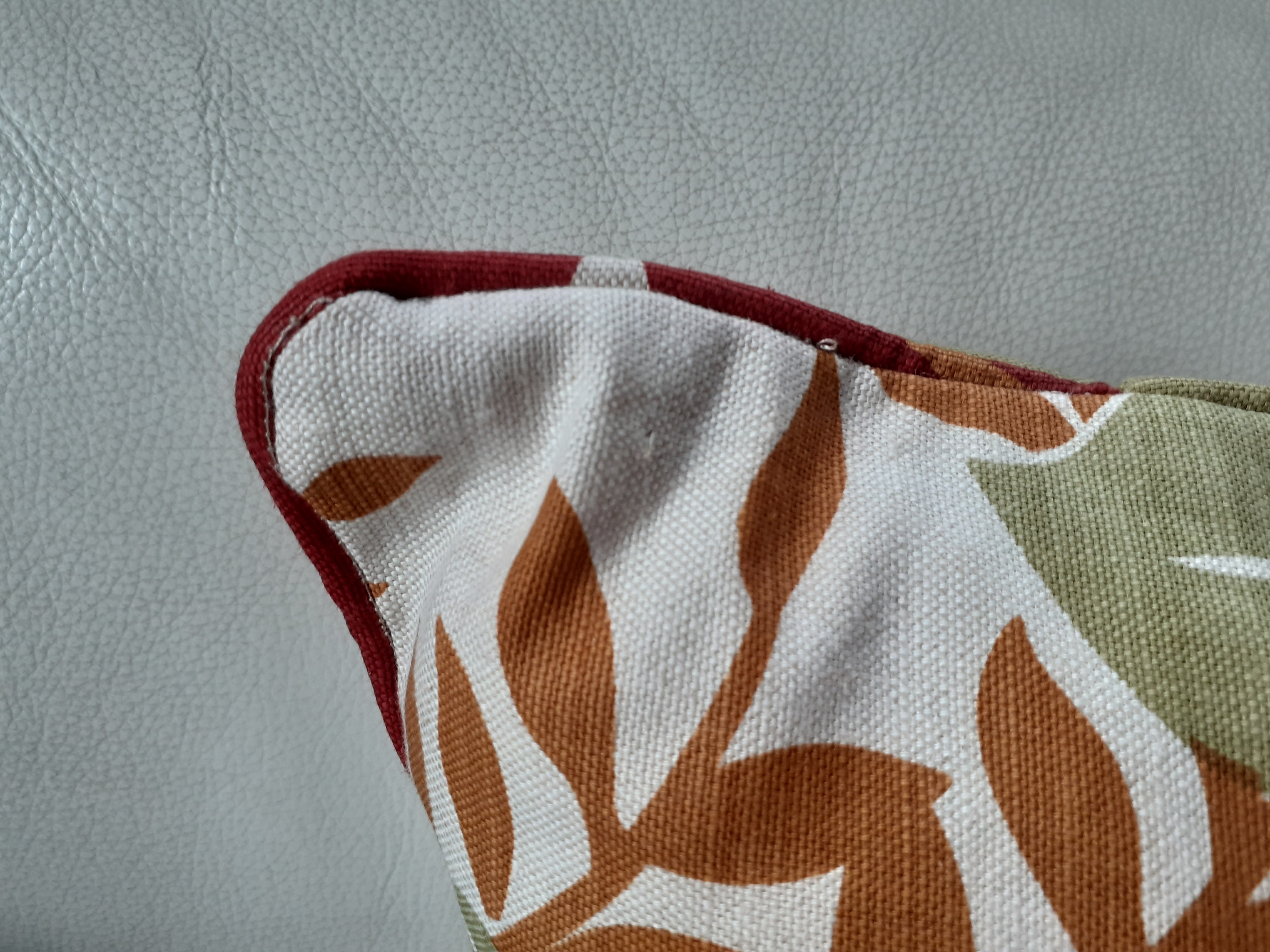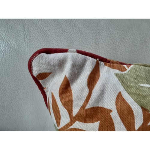 Impression feuille botanique écru, vert, ocre, rouge.