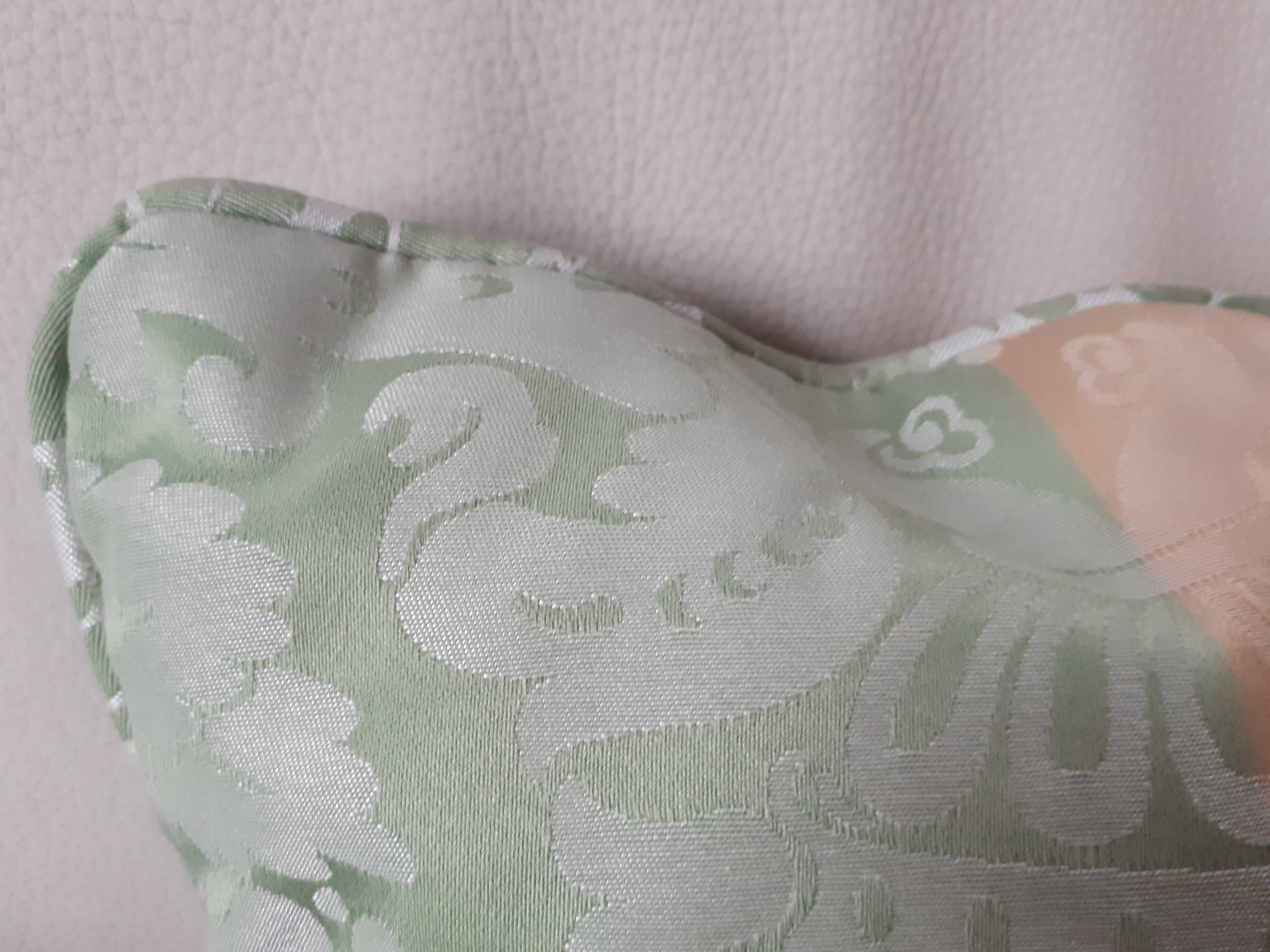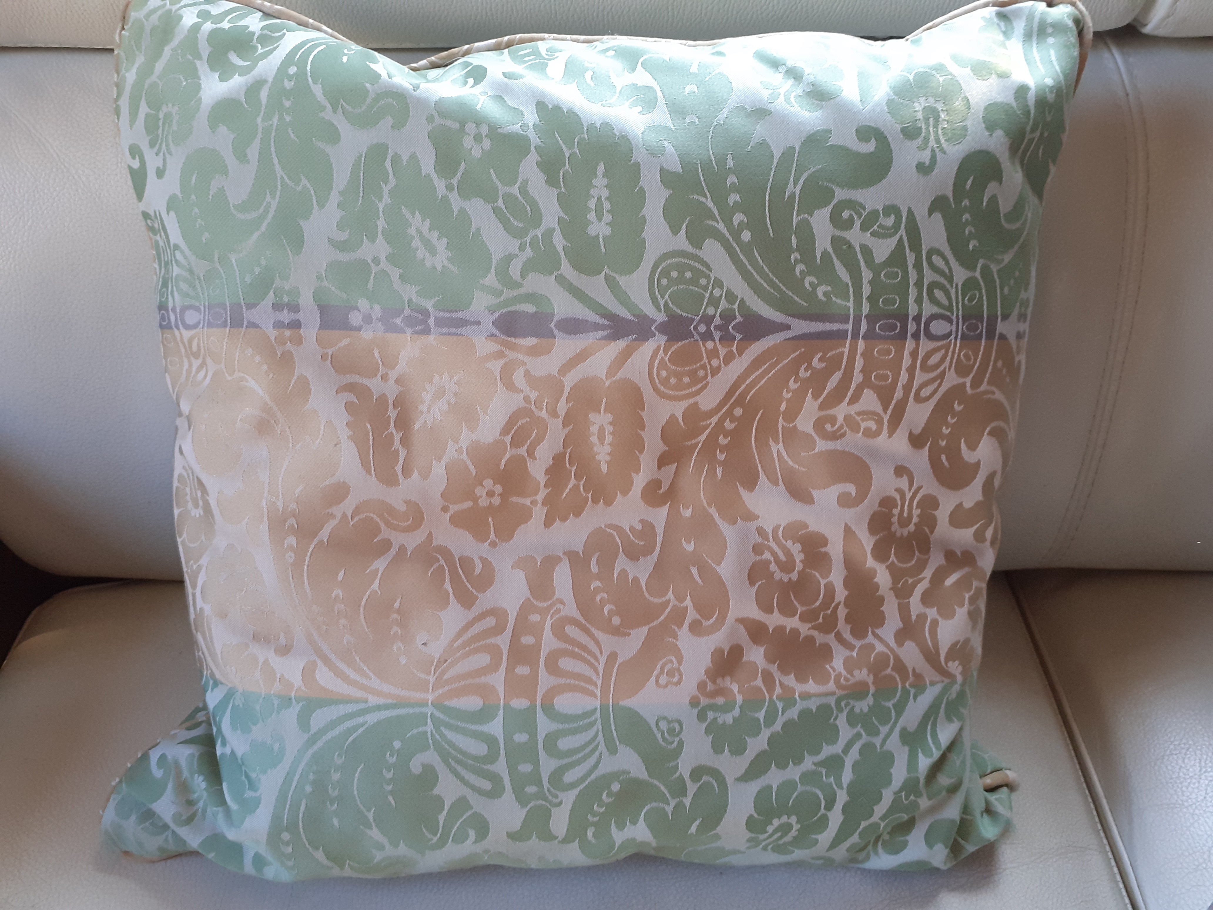 Damassé vert et or avec ligne grise.