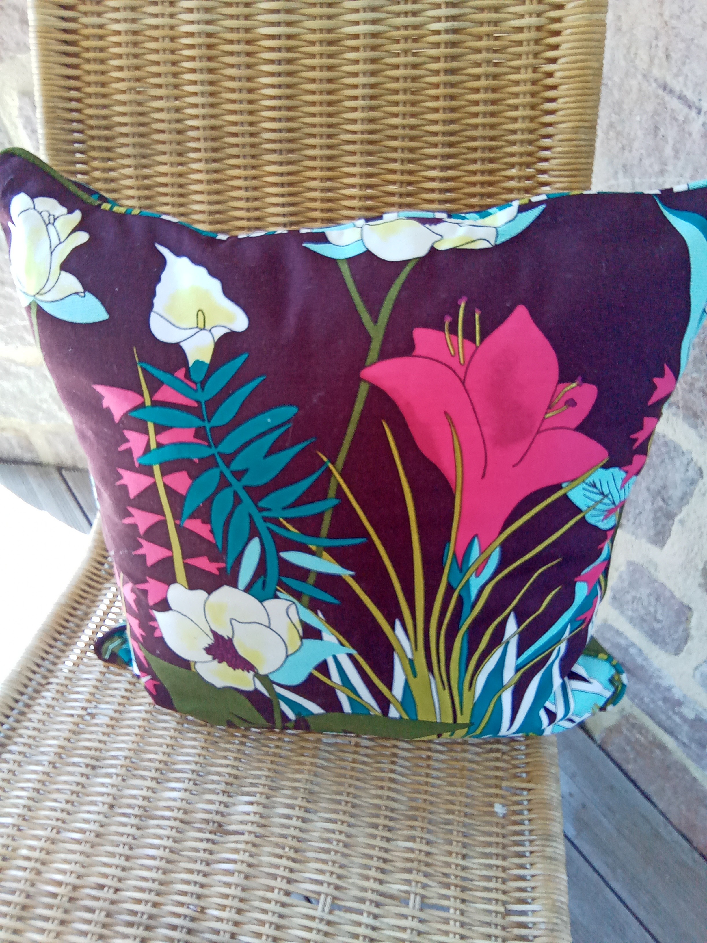 Tissu coton motif différent sur chaque côté avec passepoil ton sur ton.
